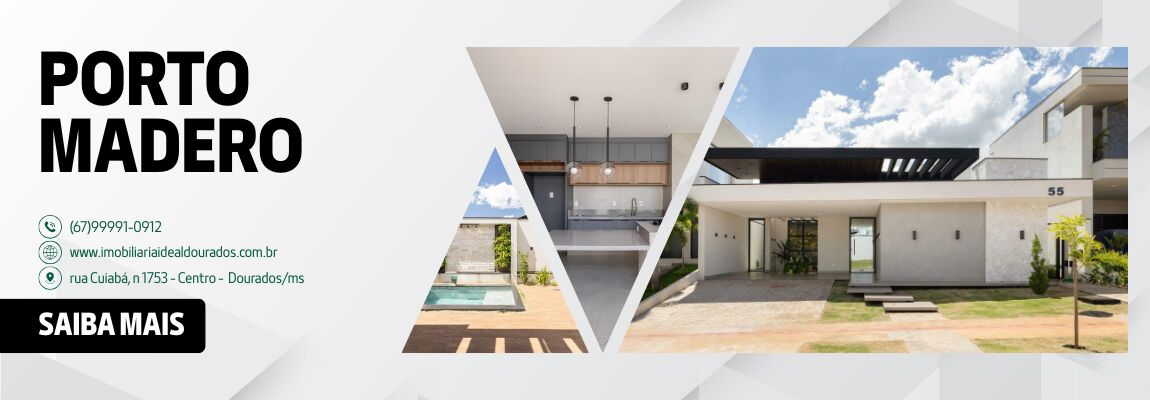 Casa Térrea à Venda Condomínio Porto Madero, o condomínio mais completo de Dourados, com lazer, segurança e conforto para toda a família! Diferenciais do Imóvel: Terreno: 344m² (14,5m de frente) Área construída: 233m² 3 suítes (sendo 1 master com closet) Lavabo Escritório Gourmet amplo integrado Sala de estar espaçosa Área de serviço + despensa amplas Piscina aquecida com cascata e hidromassagem Poço artesiano Energia fotovoltaica Água aquecida em toda a casa Uma casa projetada para unir sofisticação, conforto e tecnologia em um dos endereços mais valorizados da cidade! Entre em contato agora mesmo e agende sua visita com a Imobiliária Ideal.